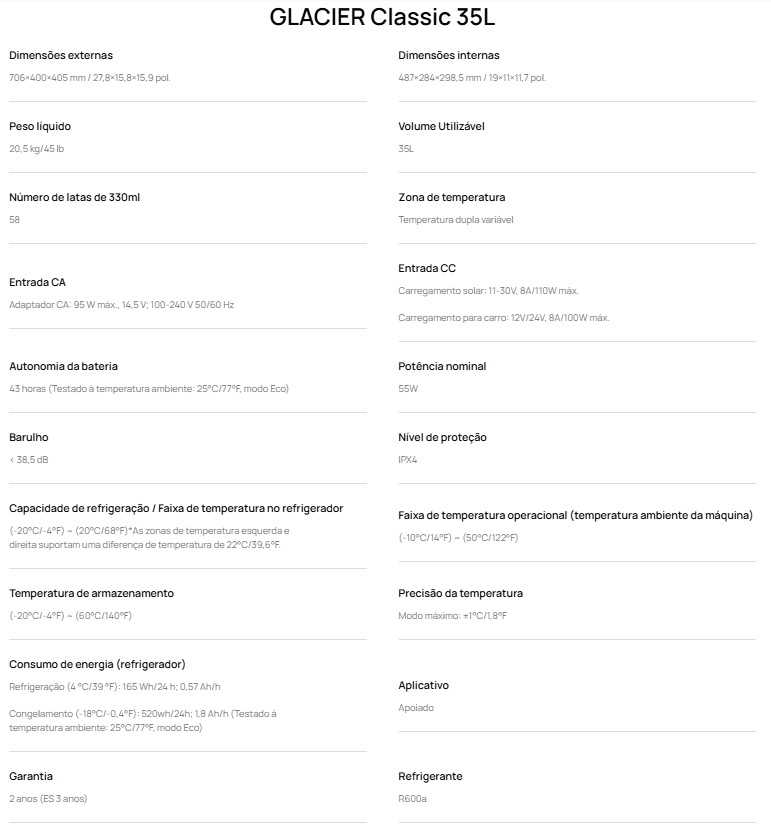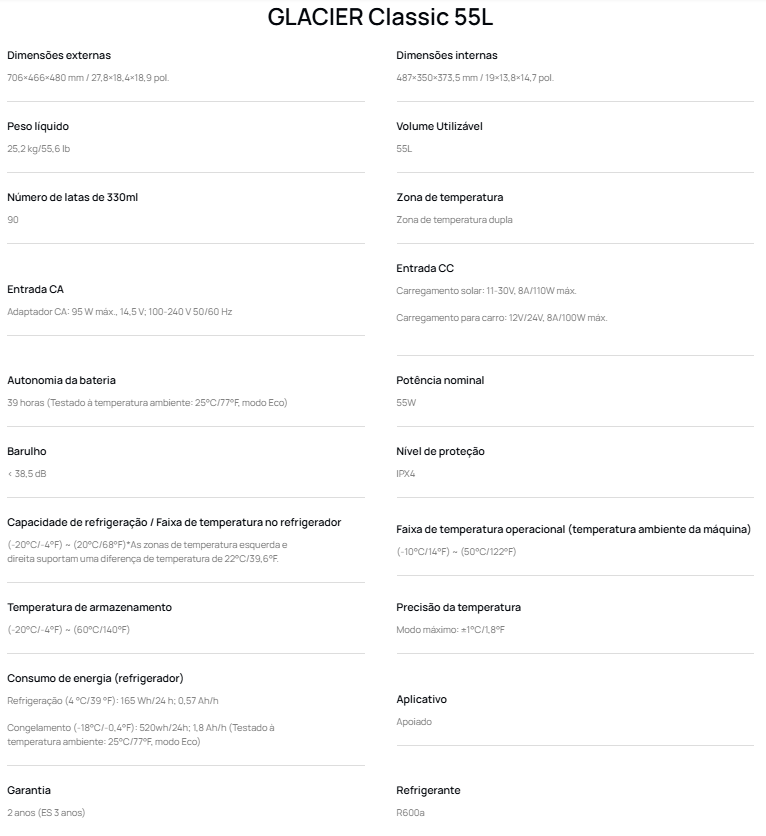 A EcoFlow Glacier Classic é a nova geração de geladeiras portáteis automotivas, desenvolvida para quem busca desempenho, autonomia e praticidade em viagens, trabalhos externos e aventuras. Disponível nas versões 35L, 45L e 55L.